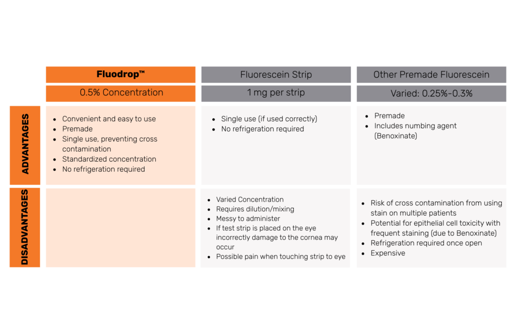 By providing a pre-mixed, single-use fluorescein solution that’s always on hand in the exam room, Fluodrop™ minimizes setup time and reduces procedural delays. This allows clinicians to complete corneal staining more efficiently and maintain a smoother appointment flow.